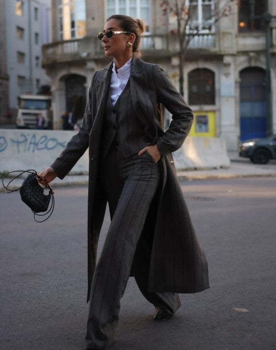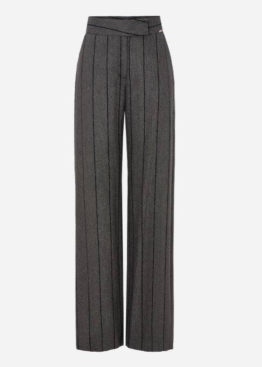 Scripta 245100 pants, long in fantasy fabric with straight cut and high waist. Fastens with metal hooks and front zipper that provides a more precise adjustment at the waist.