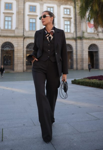 Scripta 245011 trousers, long, straight fitting and high waist with side pocket detail. Fastens with metal hooks and front zip that provides a more precise fit to the waist.