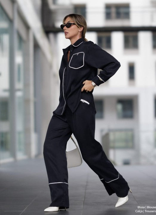 Scripta 245069 trousers, long, straight-cut, high-waisted trousers. Diagonal pocket effect detail. Fastens with metal hooks and a front zipper that provides a more precise fit at the waist.