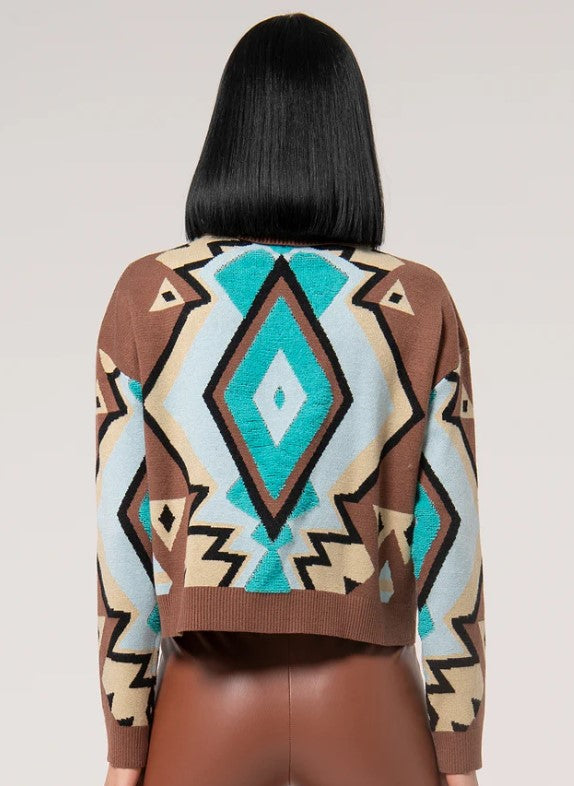 Fracomina FJ24WT7006K468F8 sweater, regular fit with geometric jacquard effect. High neck and long sleeves.