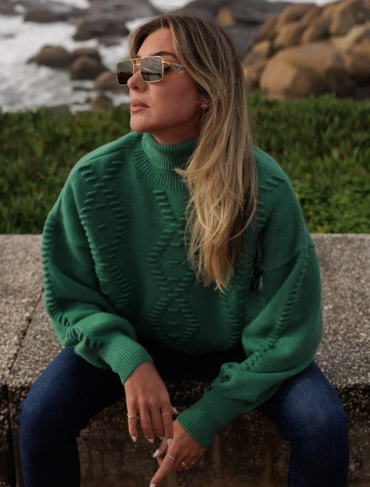 Scripta 245181 sweater, in knit with relief effect on the front and sleeve. Dropped shoulder and long sleeves. The fitting of the piece is loose.