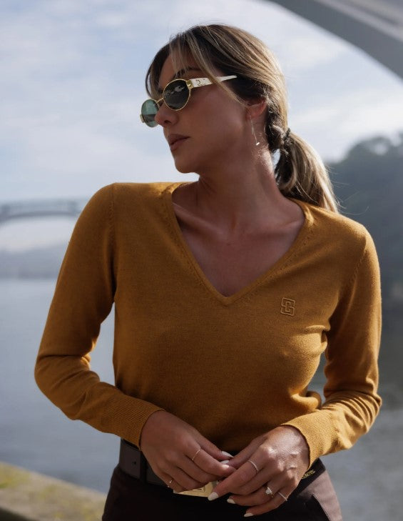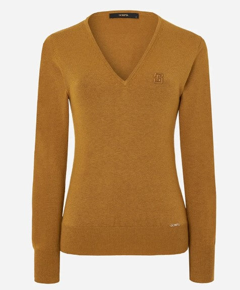Scripta 245163 sweater, long sleeve in knit with V-neck. SC embroidery detail on the side. The fit of the garment is adjusted.