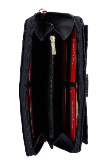 Carteira Cavalinho Honor 28190213.45.99. Inclui alça de mão removível, 20 ranhuras para cartões, 2 micas transparentes, divisões para notas e moedas.