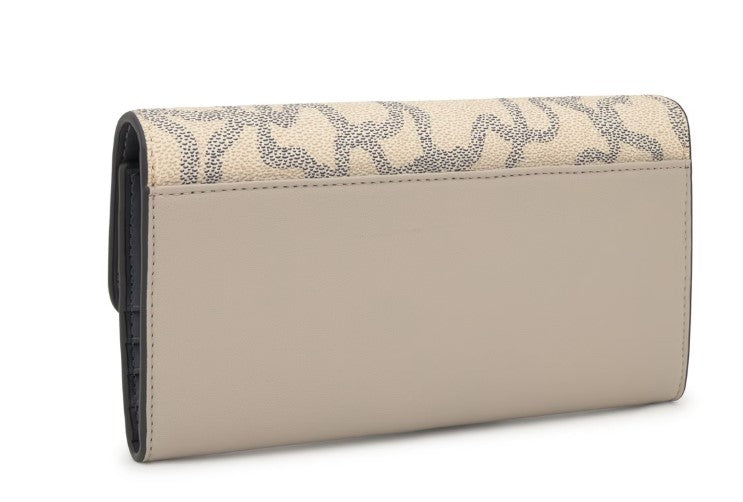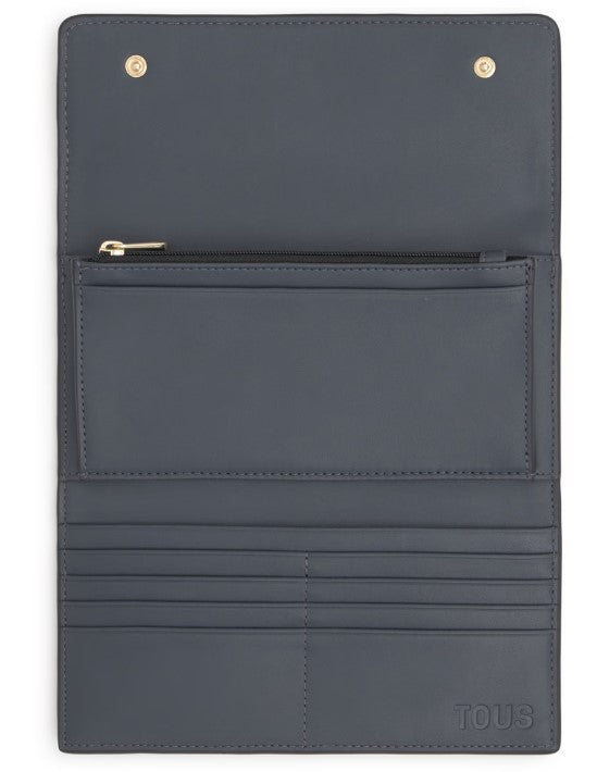 Carteira grande Flap Kaos Icon em poliuretano na cor toupeira 2002287745. Fecho de botões de pressão. No interior, tem oito ranhuras para cartões, uma divisória para moedas com fecho de correr e três divisórias para notas. Bolso aberto à frente.
