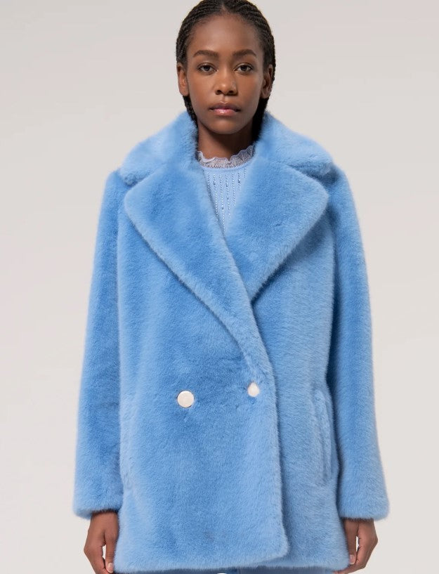 Fracomina FR24WC4004O44501 coat, regular fit double-breasted made in soft touch fabric. Classic inverted cut, buttons for opening, side pockets and long sleeves.