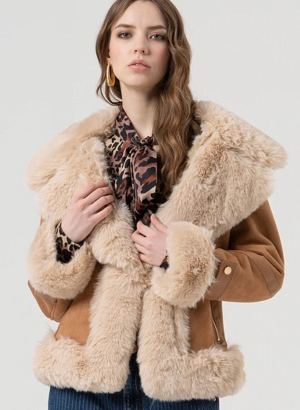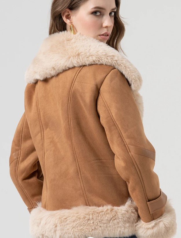 Jaqueta biker com corte regular e abertura central R25WC4008O44601. Detalhes em pele sintética, decote largo, bolsos com zíper central e mangas compridas.