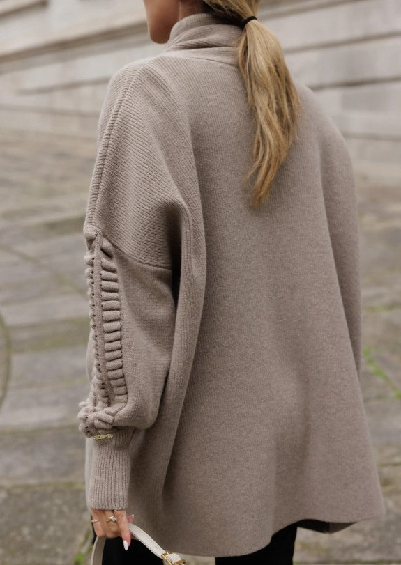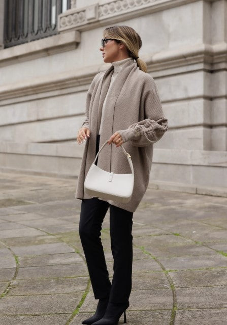 Scripta 245188 coat, in knit with relief effect on the sleeve. Wide scarf-effect collar, dropped shoulders and balloon sleeves. The fitting of the piece is oversize.