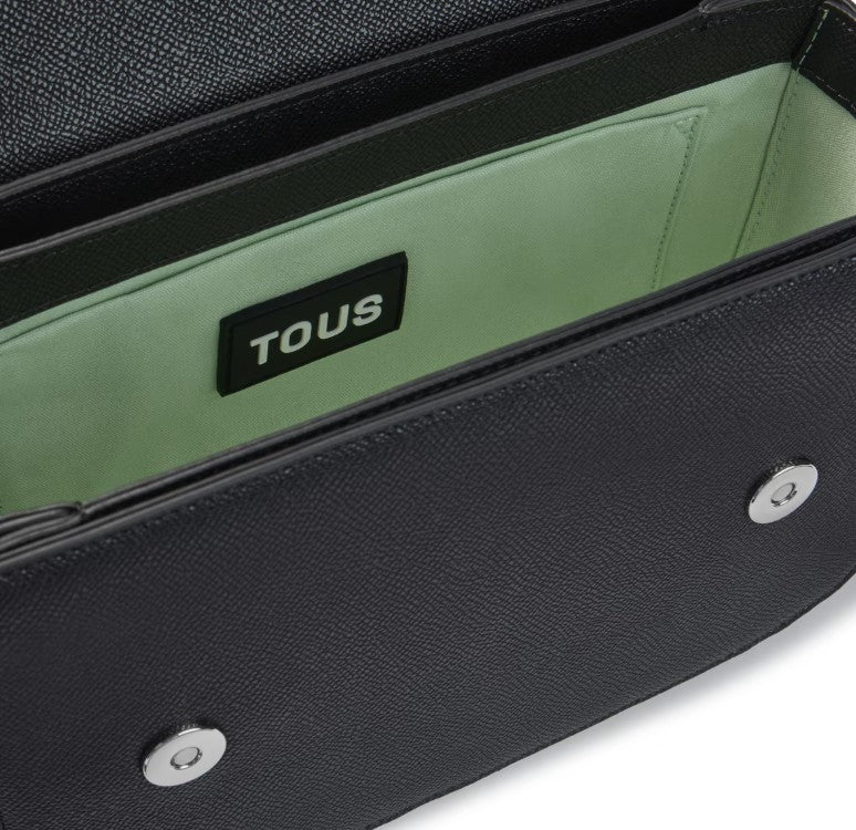 Mala de tiracolo média TOUS Brenda em poliuretano na cor preta 2002106551. Fecho de aba com botão magnético. Bolso interior aberto. Alça de tiracolo ajustável.