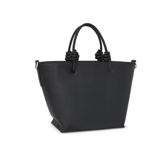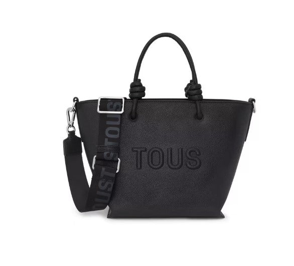 TOUS La Rue New 2001944251 small tote bag in black synthetic leather. Zip fastening. It has an open interior pocket. Fixed handle and adjustable and removable crossbody strap. Measurements (height x width x depth): 21 x 31 x 15.5 cm.
