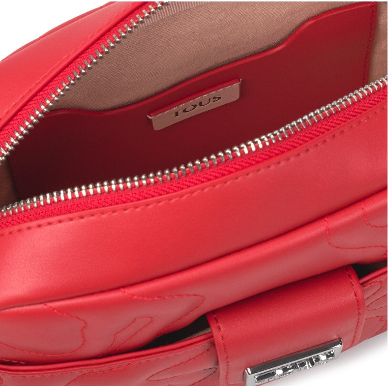 TOUS small crossbody bag from the Kaos Dream 2001577617 collection in padded polyurethane in the shape of bears with a red leather-effect finish. Long adjustable crossbody strap. Zip fastening. One inside pocket and two flat outside pockets. Measurements: 8 x 25 x 16 cm.