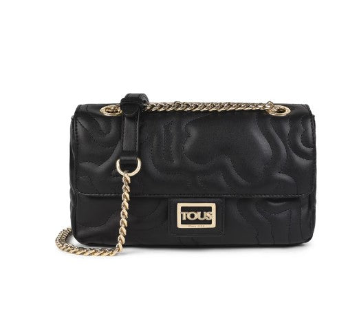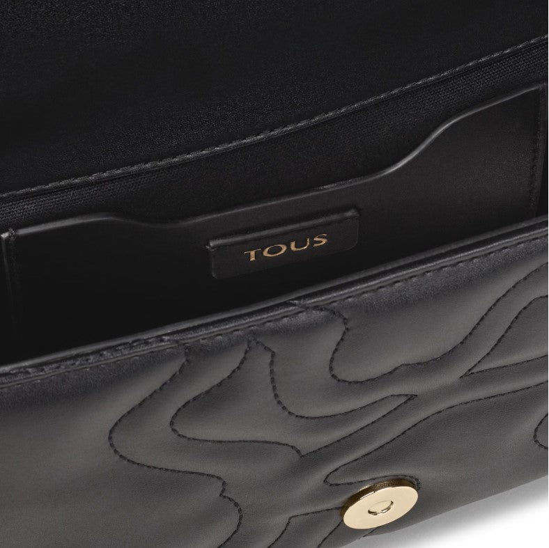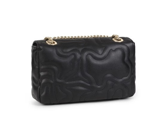 TOUS small crossbody bag with flap from the Kaos Dream 2001574051 collection in padded polyurethane in the shape of bears with a leather-effect finish in black. Long adjustable chain-style crossbody strap. Magnetic button closure. One flat interior pocket. Measurements: 8 x 25 x 15 cm.