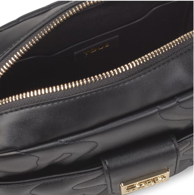 TOUS small crossbody bag from the Kaos Dream 2001577651 collection in padded polyurethane in the shape of bears with a leather-effect finish in black. Long adjustable crossbody strap. Zip fastening. One inside pocket and two flat outside pockets. Measurements: 8 x 25 x 16 cm.