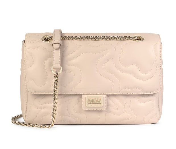 TOUS medium crossbody bag with flap from the Kaos Dream 2001576943 collection in padded polyurethane in the shape of bears with a leather-effect finish in beige. Long adjustable chain-style crossbody strap. Magnetic button closure. One inside pocket with zip. Measurements: 12 x 32 x 21 cm.