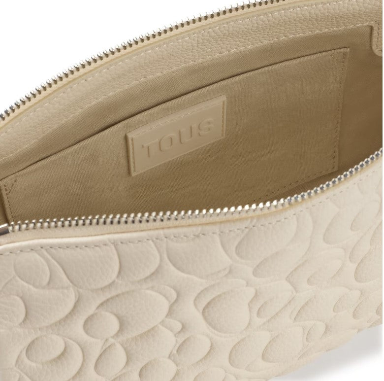 TOUS Greta 2002019601 crossbody bag in LWG certified leather in beige. Zip fastening. Open interior pocket. Adjustable and removable crossbody strap and fixed shoulder strap. Measurements (height x width x depth): 15 x 26 x 9.5 cm.