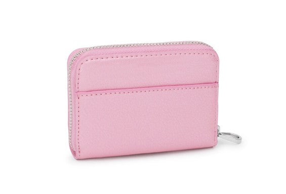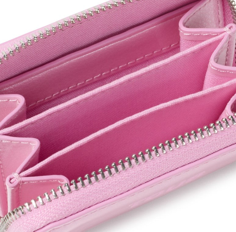 Porta-moedas New Dorp 2002103413 em poliuretano em cor rosa. No interior tem três divisórias abertas para moedas e duas ranhuras para cartões. Fecho de correr.