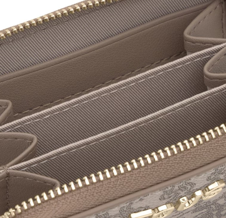 Porta-moedas Kaos Mini Lines 2002184144 em lona com detalhes em poliuretano na cor toupeira. No interior tem três divisórias abertas para moedas e duas ranhuras para cartões. Ranhura exterior para cartões na parte posterior. Fecho de correr.