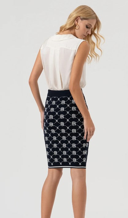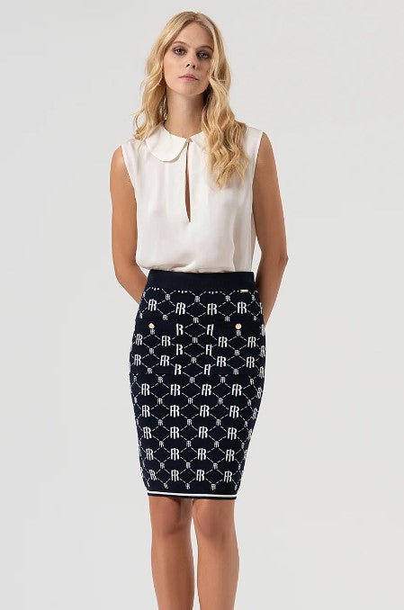 Saia de malha slim fit comprimento médio com efeito jacquard logo e cintura alta R25WG4009K414F8.