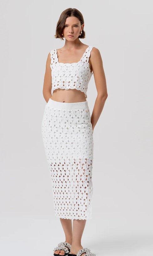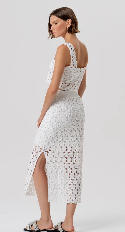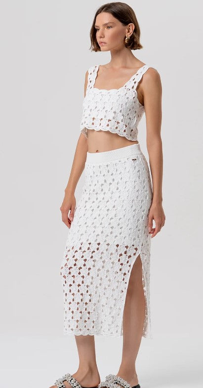 Saia tubinho de malha, corte justo, comprimento midi R26SG4008K488R6. Cintura alta e fenda na parte de trás.