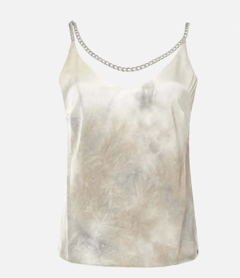 Scripta 250033 Top, printed with strap detail and chain neckline. V-neckline. The fitting of the piece is fluid.
