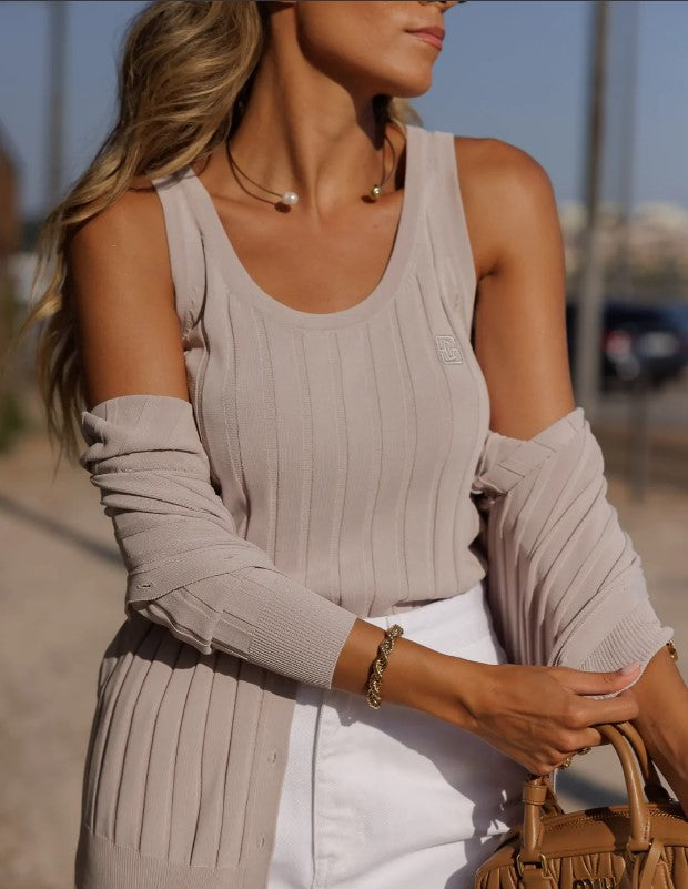 Top Scripta 250181, in ribbed knit, with round neckline. The fitting of the piece is adjusted.