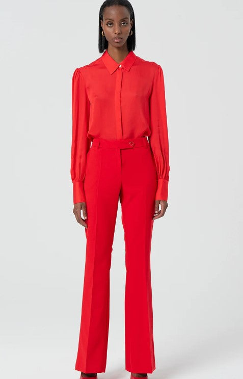 Calça Fracomina FR25SVA004W42901, bootcut com cintura regular. Cintura regular, bolsos franceses, bolsos de debrum nas costas, perna justa com perna inferior larga.