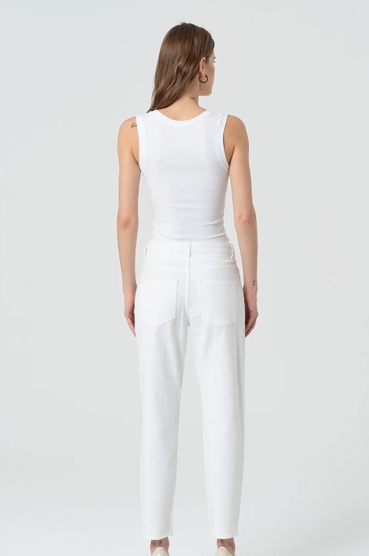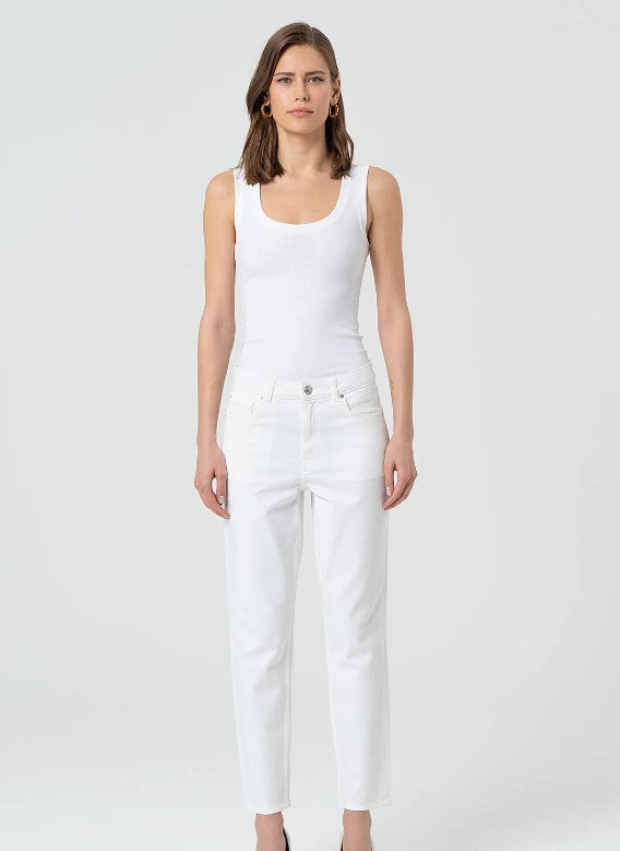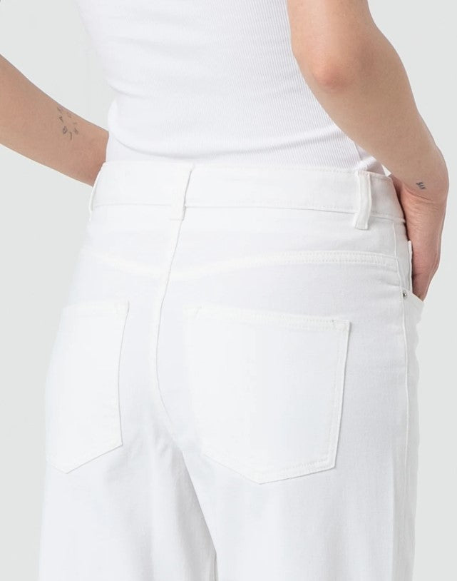 Calça Fracomina FP25SVD005W77001 mom fit. Cintura alta, 5 bolsos e parte inferior reta.