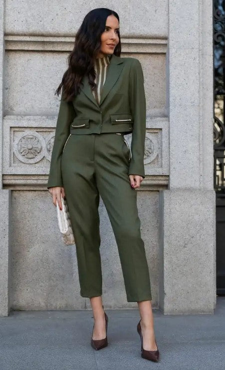 Composição: 66% poliéster, 31% viscose, 2% elastano e 1% metal