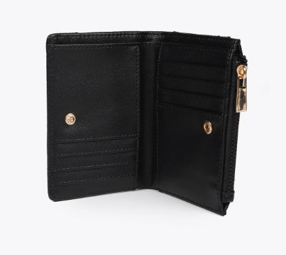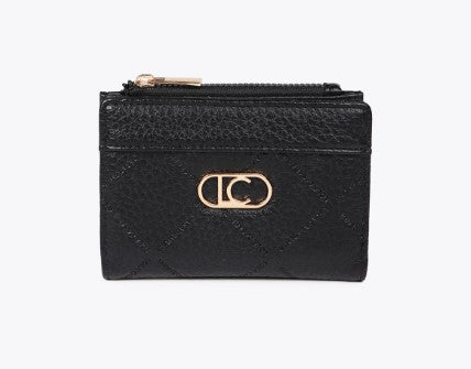 Carteira compacta com design elegante e monograma de diamante em relevo LF2512007. Material sintético de alta qualidade, fecho de zíper seguro e múltiplos compartimentos para cartões. Detalhe metálico na frente que adiciona sofisticação.