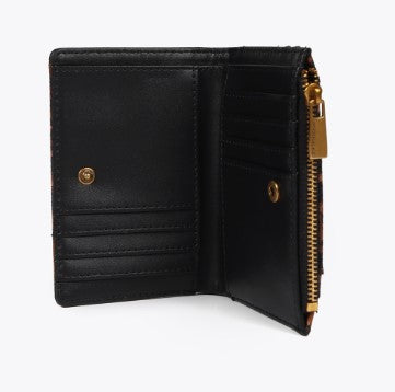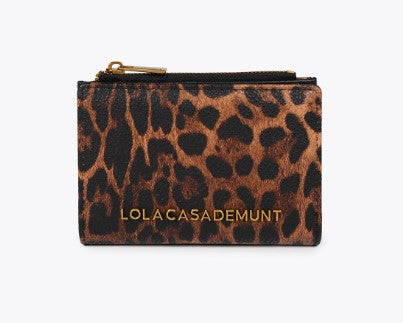 Carteira compacta com design de estampa animal em acabamento texturizado LF2512010. Inclui compartimentos internos para cartões e bolsa com zíper. Logotipo gravado na frente.