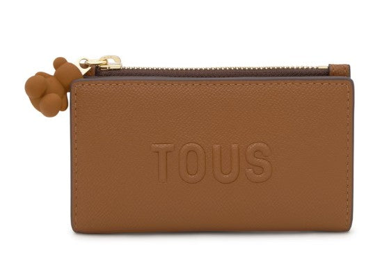 Carteira TOUS Brenda em poliuretano na cor camel 2002105646. Fecho com botão de pressão. Tem uma divisória para moedas com fecho de correr. No interior tem oito ranhuras para cartões e dois espaços para notas.