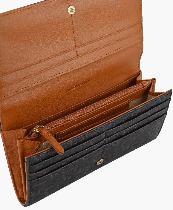 Carteira Valentino VPS8GT113 compartimento para documento de identidade, compartimento para notas duplas, compartimento para moedas, compartimento para cartão de crédito, bolso com zíper. Inclui 19 slots para cartão de crédito