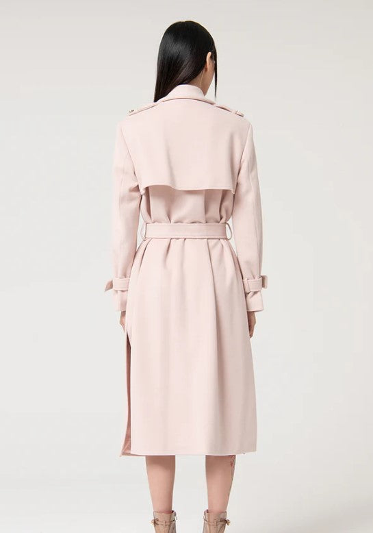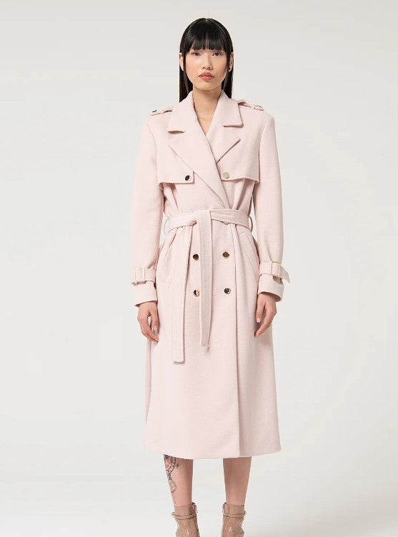 Casaco Fracomina FS24WC7002W48601, longo regular fit. Gola com corte clássico, faixa na cintura, botões metálicos para abertura, bolsos laterais e mangas compridas.