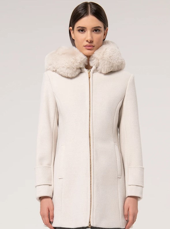 Casaco Fracomina FR24WC1016W57901, com capuz, zíper central para abertura, bolsos laterais e mangas compridas.