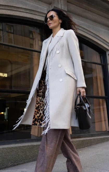 Casaco comprido com detalhe de franja 255111