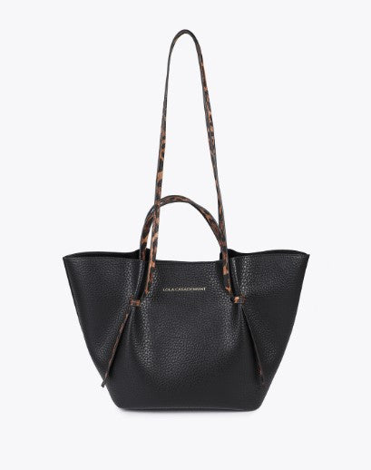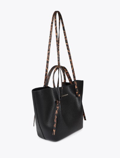 Mini shopper confeccionada em material sintético com detalhes em efeito de pele de animal print LF2504035. Compartimento interno com fecho de correr e fecho magnético. Alças ajustáveis para maior conforto.