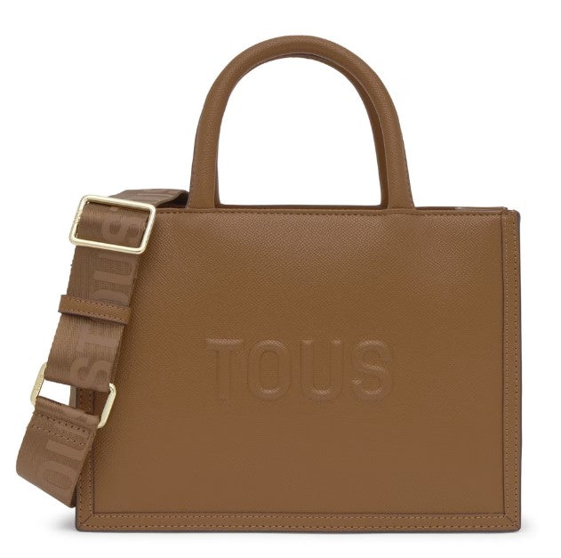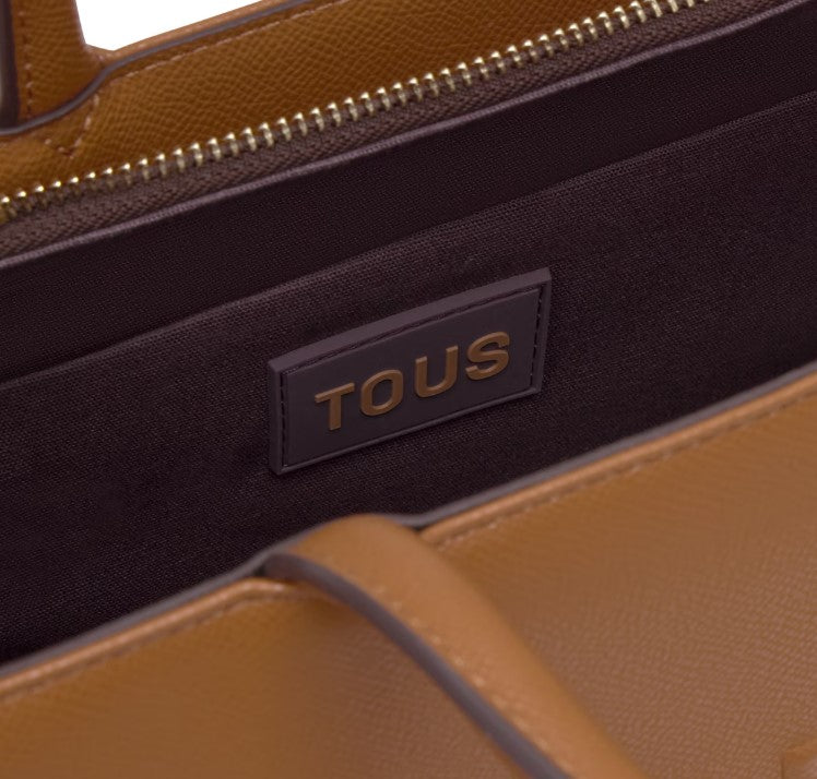 Mala shopper média Amaya TOUS Brenda em poliuretano na cor camel 2002192143. Fecho de correr. Bolso interior com fecho de correr. Alças fixas de ombro e alça de tiracolo ajustável e removível.