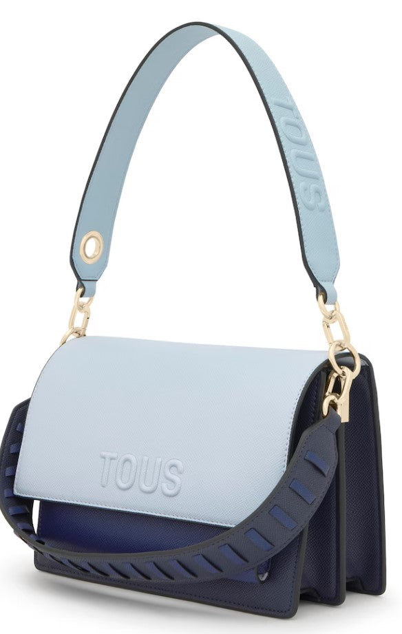 Bolsa transversal média Audree Saffiano em poliuretano azul-marinho 2002358233. Fecho com aba e botões magnéticos. Bolso externo aberto. Possui dois compartimentos separados por um zíper. Alça transversal ajustável e removível e alça de ombro removível.