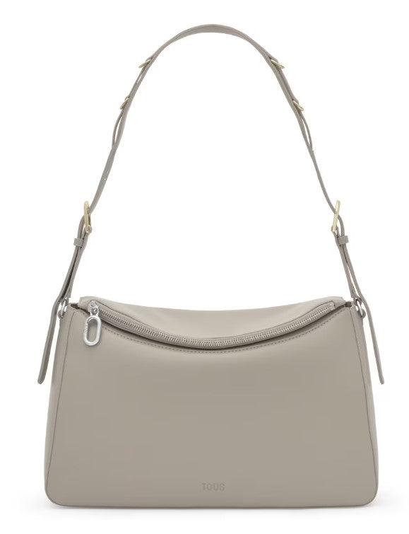 Mala de tiracolo grande TOUS City em poliuretano na cor toupeira 2002303343. Fecho de botão magnético. Bolso interior e exterior com fecho de correr. Alça de ombro ajustável.