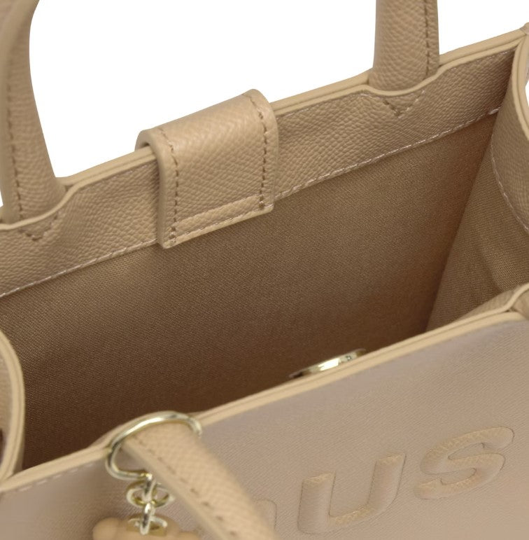 Minimala Pop TOUS Brenda em poliuretano na cor areia 2002105943. Fecho com botão magnético. Asas fixas de mão e alça de tiracolo ajustável e removível. Incorpora um bonito detalhe de urso pendurado.
