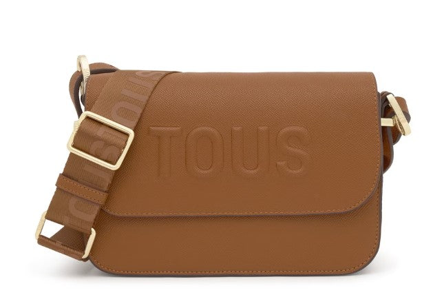 Mala de tiracolo média TOUS Brenda em poliuretano na cor camel. Fecho de aba com botão magnético. Bolso interior aberto. Alça de tiracolo ajustável.