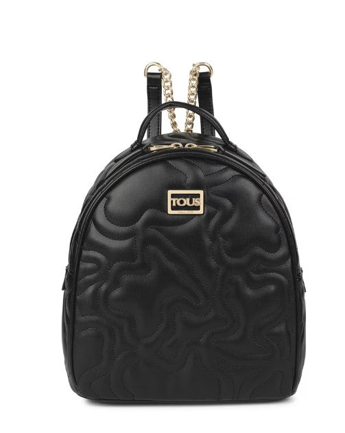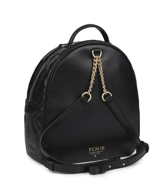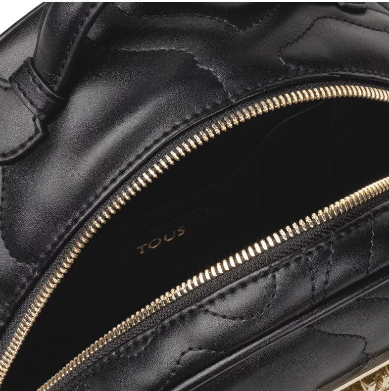 Mochila TOUS da coleção Kaos Dream 2001582851 em poliuretano acolchoado em forma de ursos com acabamento efeito pele em cor preta. Asa curta de mão e alças de ombro ajustáveis. Fecho de correr. Um bolso interior plano. Medidas: 14 x 25 x 27 cm.