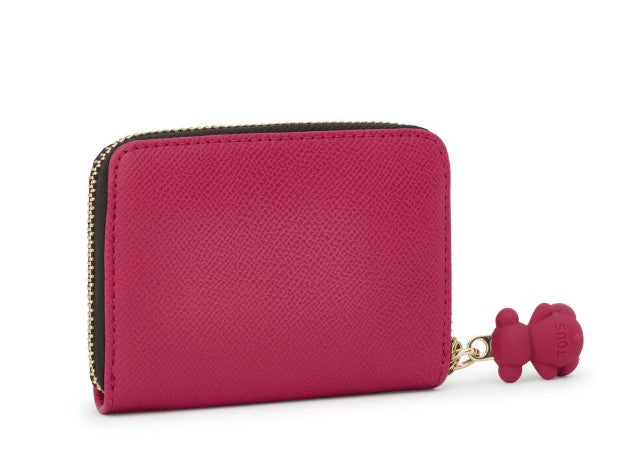 Porta-moedas TOUS La Rue New 2002001925 em pele sintética na cor fúcsia. No interior tem três divisórias abertas para moedas e duas ranhuras para cartões. Fecho de correr. Medidas (altura x largura x profundidade): 8 x 11 x 3 cm.