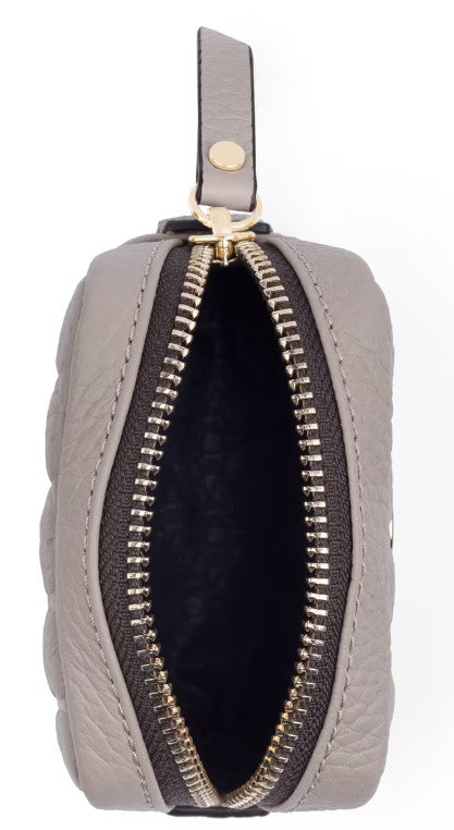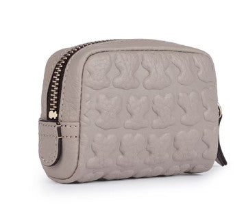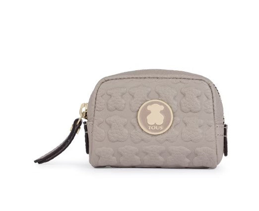 Porta-moedas pequeno TOUS Sherton 2001052147 em pele bovina gravada com urso a simular efeito crocodilo na cor toupeira. Com fecho de correr. Medidas: 7 cm x 10 cm x 5 cm.