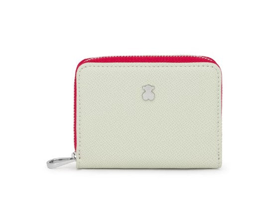 Porta-moedas médio TOUS da coleção New Dubai 2001690039 em poliuretano com efeito saffiano em bege e menta. Com fecho de correr e duas divisórias para moedas. Medidas: 11 x 8 x 3 cm.