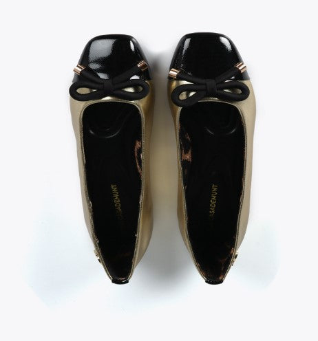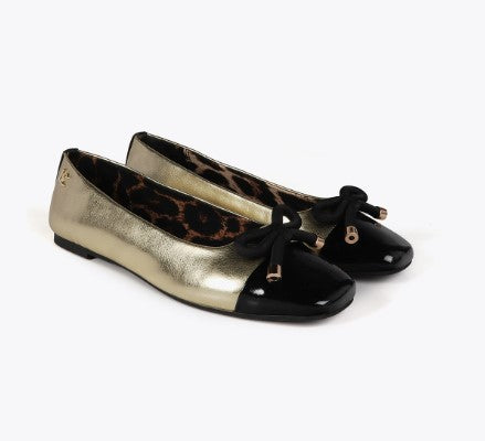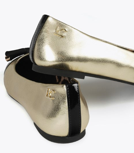 Bailarinas elegantes com ponta redonda e detalhe de laço frontal LF2505027. Design metálico com forro animal print. Sola flexível para maior conforto. Logotipo LC gravado na lateral.