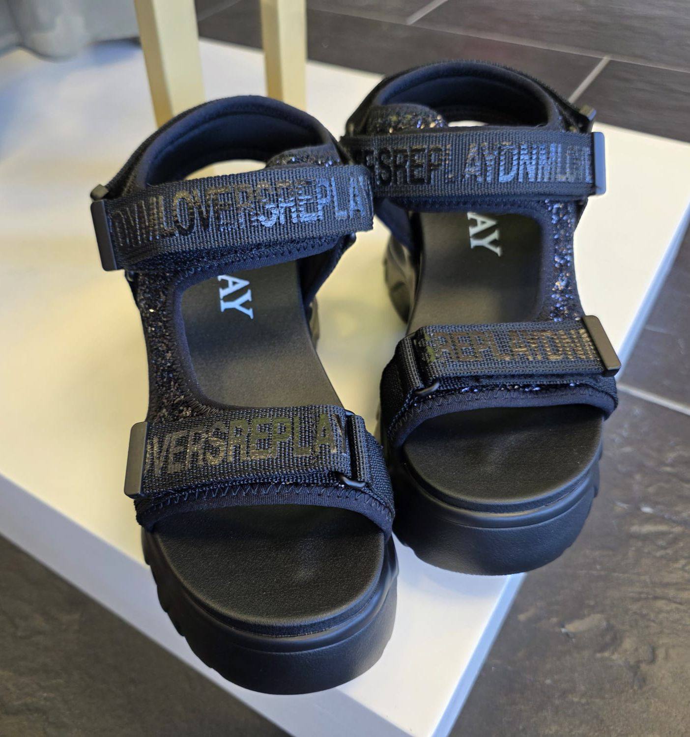 Sandálias com sola grossa, tiras e fecho de velcro, com o logotipo da Replay na parte frontal RSIS0003S.