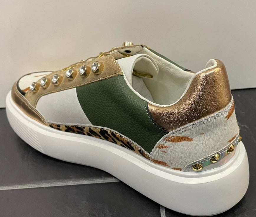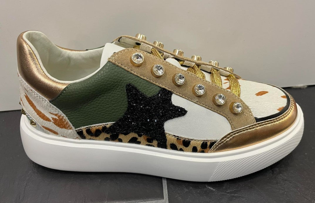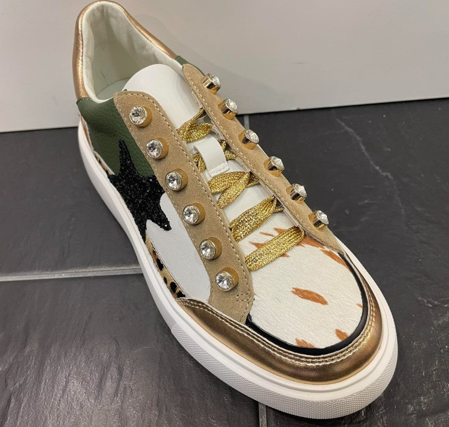 Sapatilhas ABF-97 STAR-61 de várias cores com pelo leopardo e brilhantes.