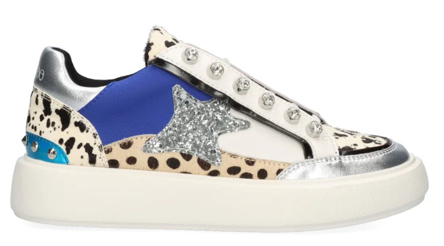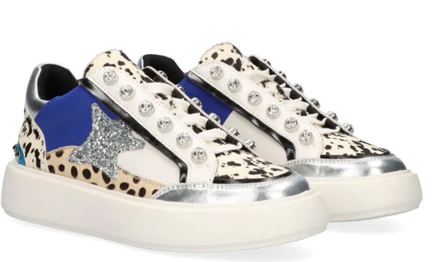 Sapatilhas ABF-97 STAR-61 de várias cores com pelo leopardo e brilhantes.