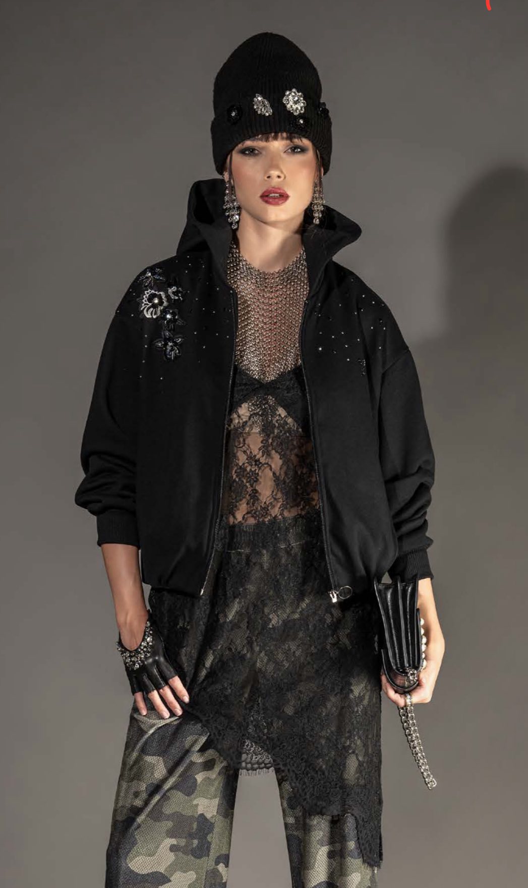 Top de renda com alças reguláveis e forro no peito FS25610070. Apresenta corte irregular com detalhe em renda na extremidade, criando um efeito moderno. Ideal para combinar em looks mais ousados ou em sobreposição.